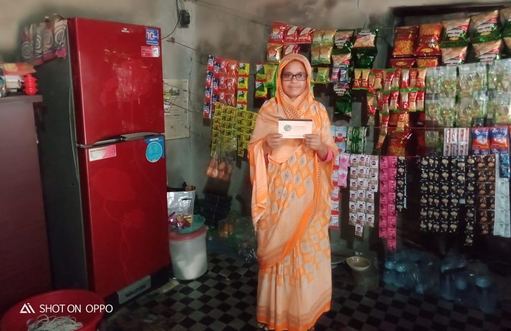 Sahnaz Parvin age 51 wife of Md. Arman Mia of Borobari, Pubail, Gazipur District received financing to purchase goods for her micro-business established in front of her house. Her micro-grocery is earning more than her expectation. She is now contributing in the family aside from her husband.